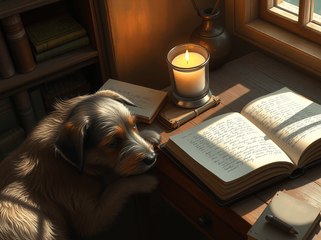I write from a place shaped by years of teaching, caregiving, theological inquiry, and quiet listening—often with a dog curled beside me or a candle burning on my desk. These reflections are part of what I call poetic theology—not doctrine dressed in metaphor, but language shaped by breath, memory, silence, and the sacred work of noticing.